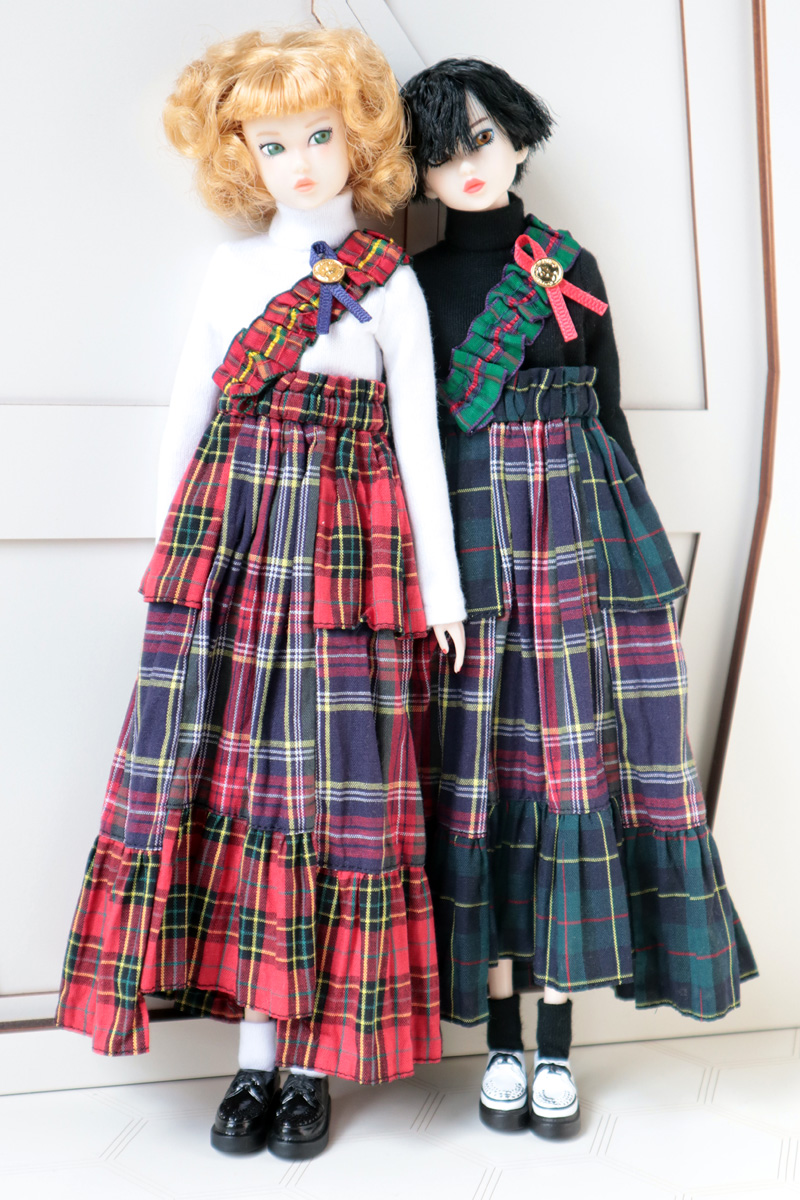 大好きなタータンチェックのスカートはスライドした切り替えがポイント。