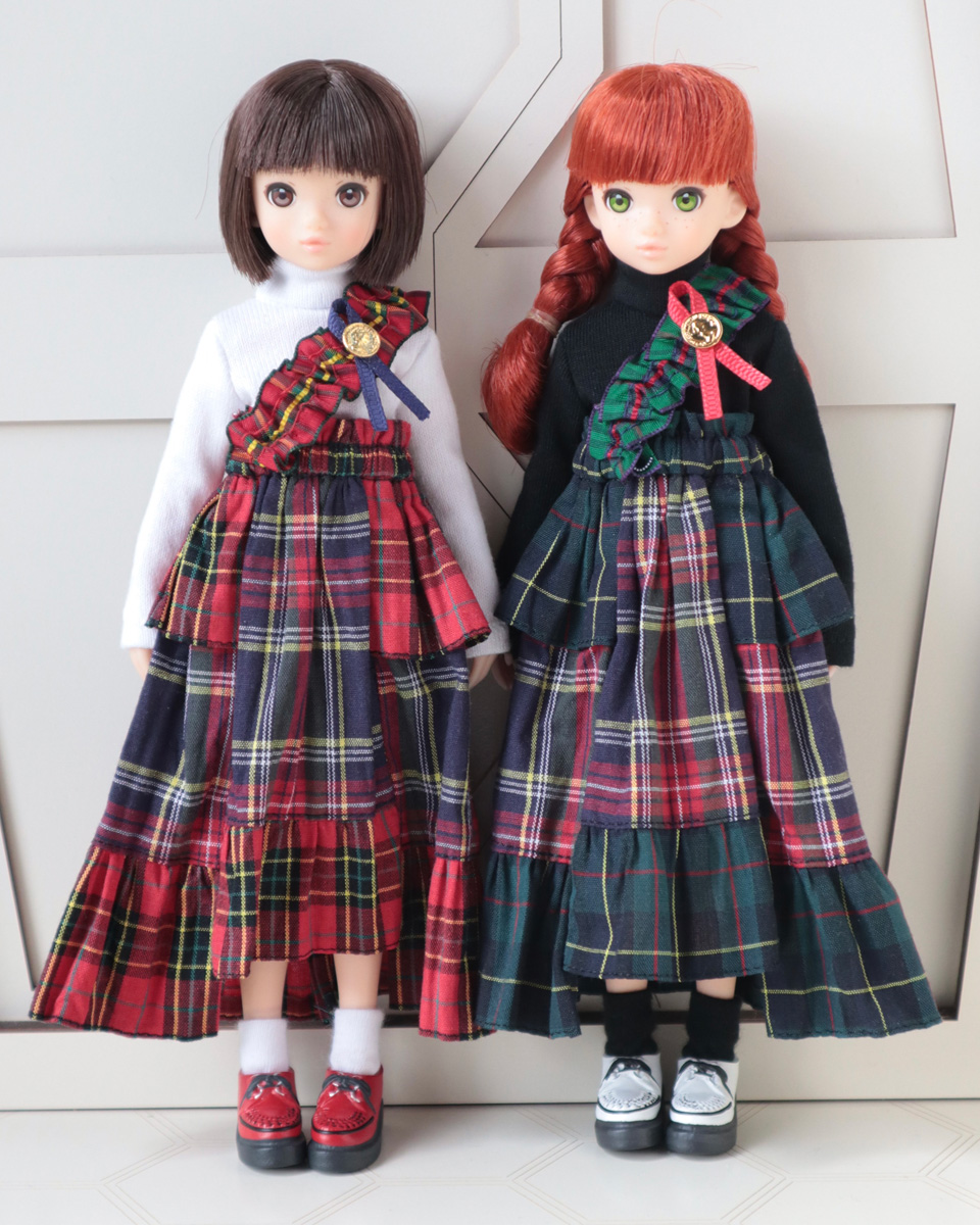 大好きなタータンチェックのスカートはスライドした切り替えがポイント。