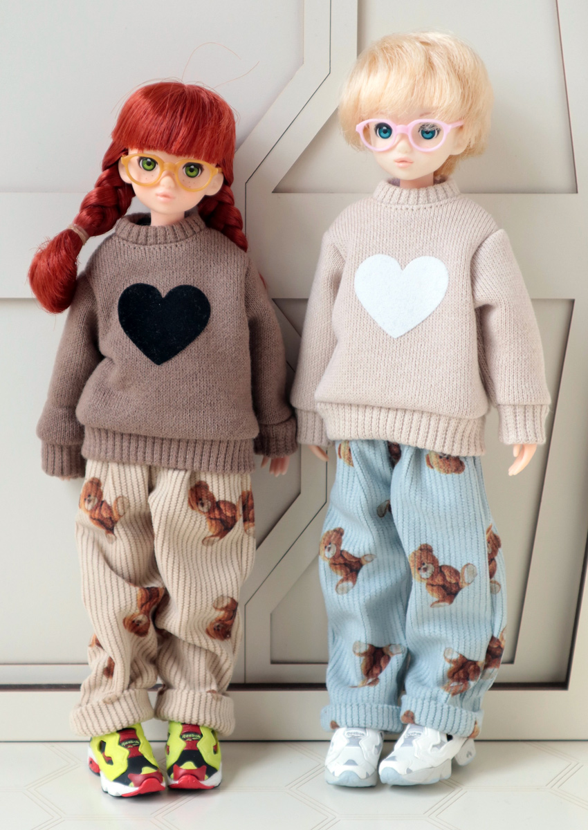 ハート&ベア SET (ブルー・ベージュ) 【六分の一男子図鑑サイズ】